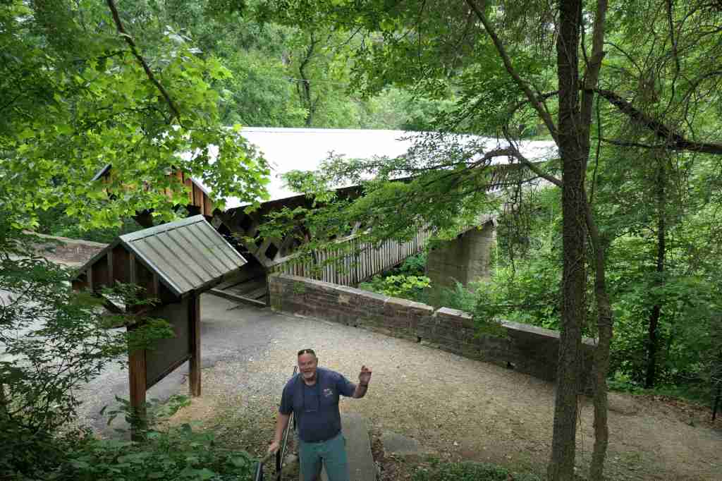 After the hugs and farewells, the first order of business before leaving Blount County, Alabama, for our return to the Hoosier State was to find the other two covered bridges in/near Oneonta. That’s Susie, always looking for something to experience.