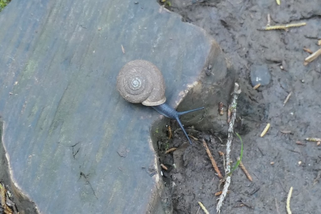 Curiously, we had to keep an eye out for these little guys underfoot on the muddy trail. Seemed like there were snails everywhere.