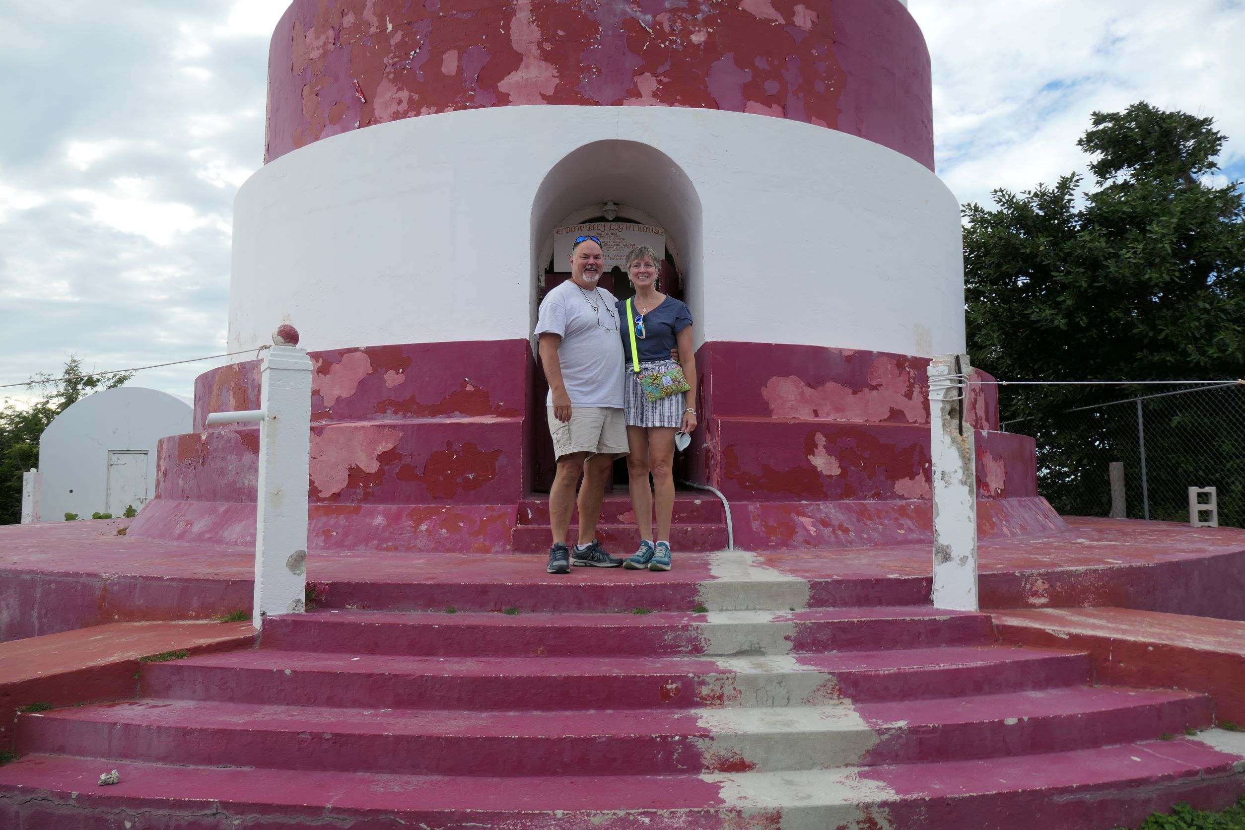 The lighthouse originally showed a fixed, steady white light, but in the 1930’s, the British Imperial Lighthouse Service saw the need for a light which could be more easily identified by ships at sea. They were upgrading other lighthouses throughout the islands, so that brought over a fancier mechanism from Gun Cay and through a major refit the fixed light was replaced by a rotating Fresnel lens to translate a group of five white flashes every fifteen seconds, 120 feet above sea level with a visibility of more than fifteen nautical miles.