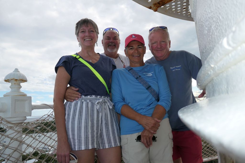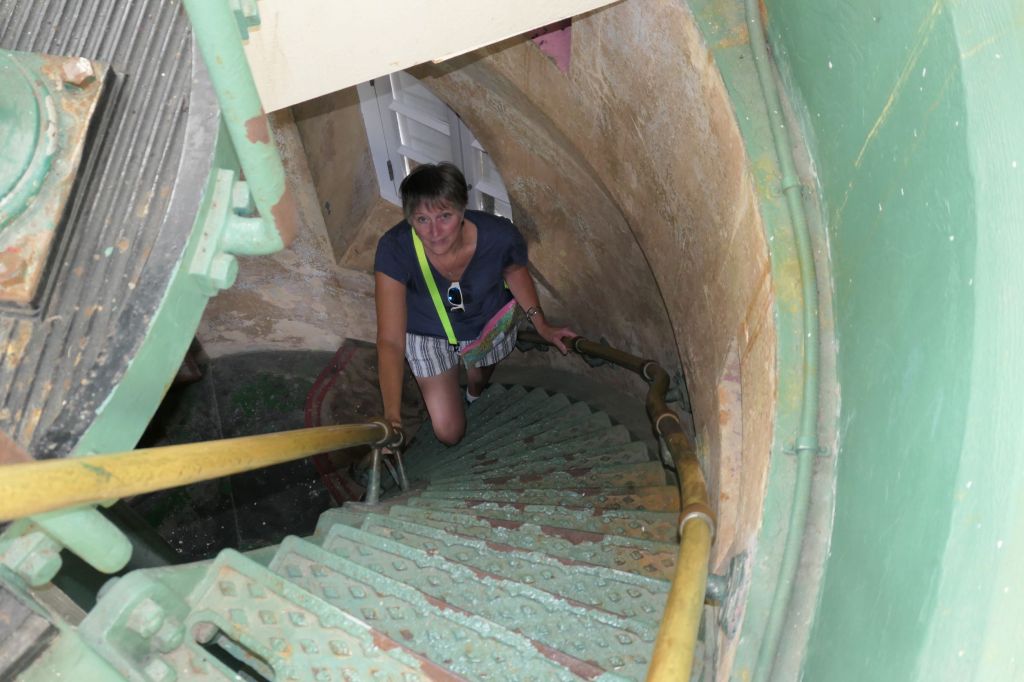 We found a break in the weather yesterday to finally make our visit to the lighthouse. The wind calmed and we dashed over in spitting rain (wipers on sunglasses would come in handy) to meet John and Madeleine from Chanceaux for our climb to the top. Given the weather, we had the lighthouse to ourselves.