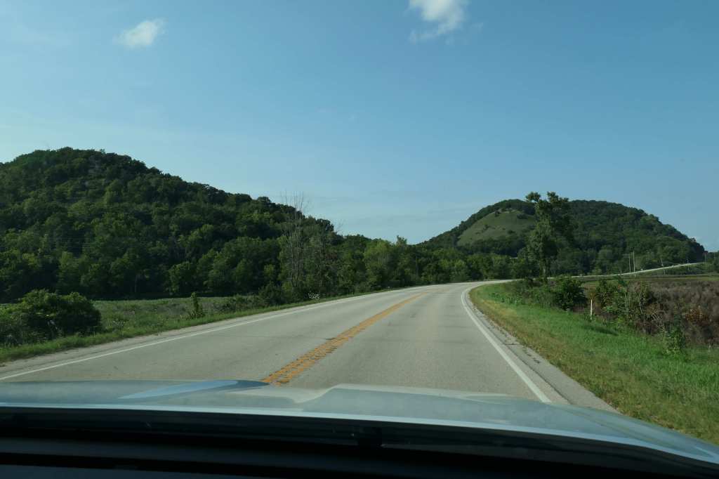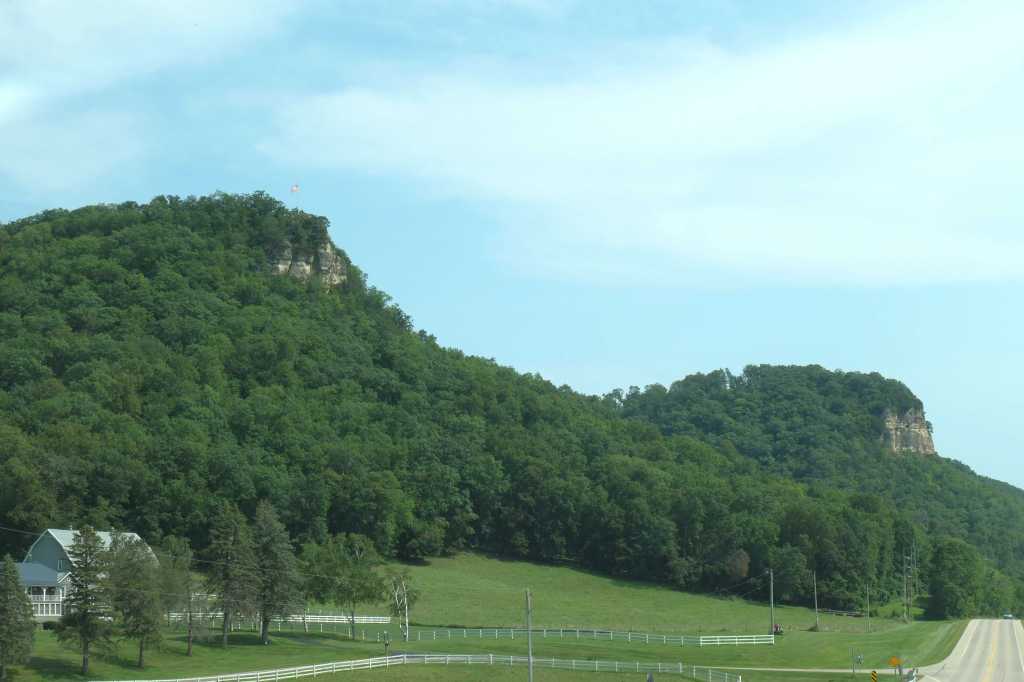 But enough about boats. How about scenery? Weeks ago, as we neared the Cashton area – we noticed how the hills were more bumpily – [“bumpily,” Honey? Yes, “bumpily.”] – and often sharper. Well, it got more pronounced near the big river. Couple of stops in, we learned more about the Driftless Region. Apparently, there’s a whole chunk of Wisconsin, Iowa, and Minnesota that was NOT smooshed by the last glacier period; hence when the water ran off, it carved a bunch of valleys and left even more of these abrupt “bluffs.”