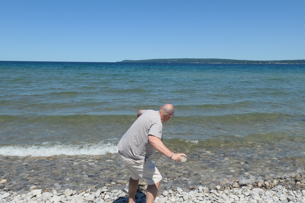 Gift from a young man in the parking lotWhile Susie photographed Little Traverse Bay & looked for stones…where was Todd?Hey!That better not be a Petoskey stone, Buddy!