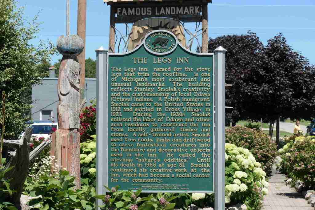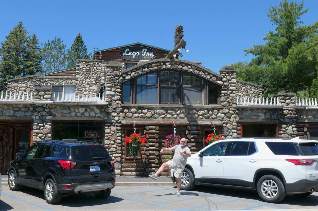 That was all well and good, but the “snack” (a shared savory scone) had worn off. It was almost 1500 and time for some actual food. Not to worry, Susie the Planner had a plan for that, too. We found ourselves at the historic and quirky Legs Inn, specializing in whitefish and polish fare, not to mention woodwork galore. Walk out to the back garden and one can see four lighthouses. What a spot!